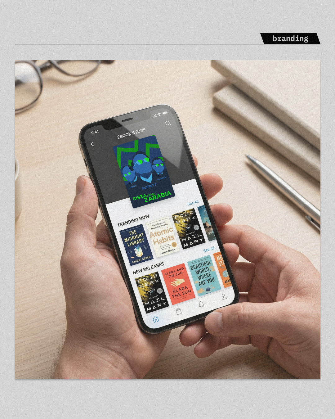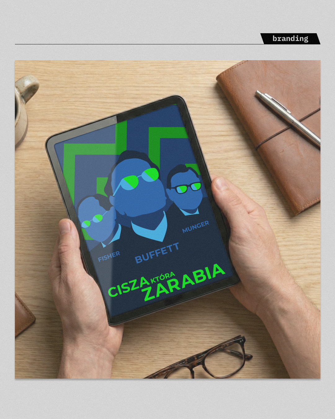 Projekt okładki e-booka narodził się z dogłębnego researchu tematyki inwestowania jakościowego. Filozofia, którą kierują się główni bohaterowie publikacji – Warren Buffett, Charlie Munger i Philip Fisher – opiera się na cierpliwości, konsekwencji i rygorystycznej selekcji.