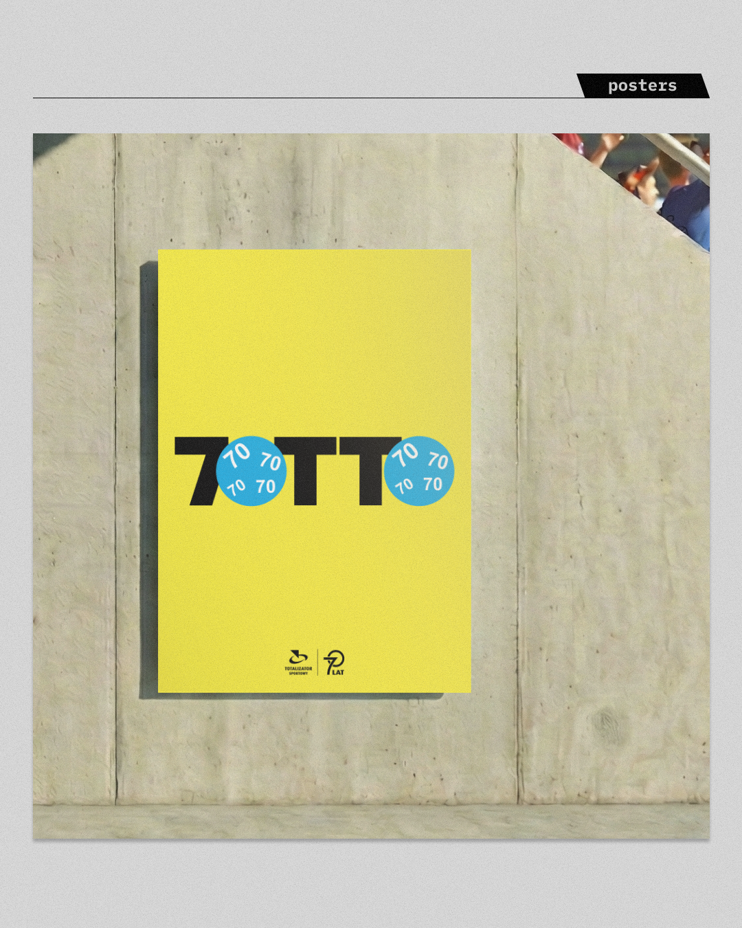 Koncepcja, nawiązuje do dziedzictwa wizualnego marki. Zastosowałem zabieg typograficzny: poprzez odwrócenie i przechylenie pierwszej litery logotypu, uformowałem z nich jubileuszową liczbę "70". Starałem się połączyć tradycję z nowoczesną formą minimalistyczną formą, tworząc unikalny znak, który na żółtym tle charakterystycznym dla marki od razu kojarzony jest z Totalizatorem Sportowym.