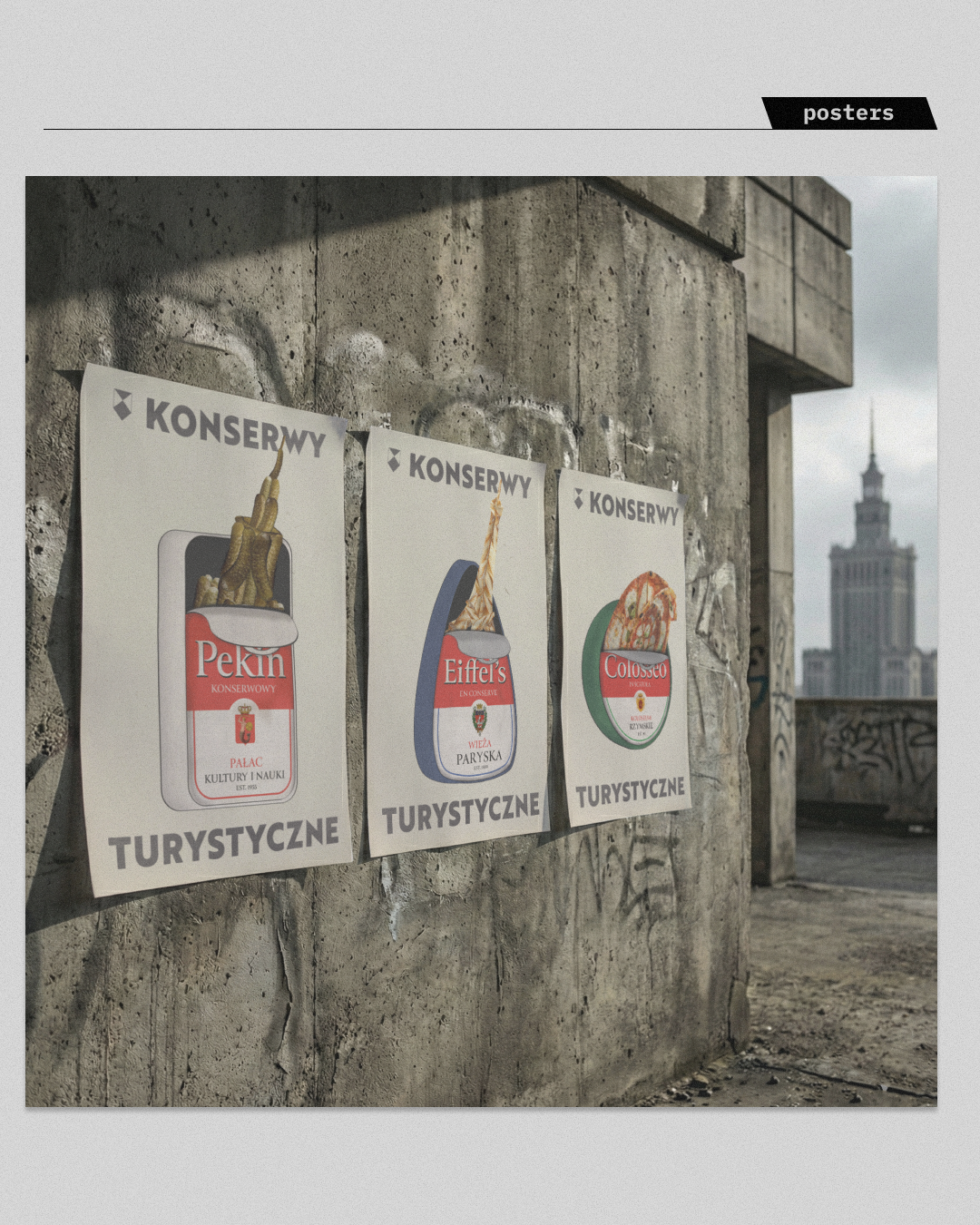 Celem było stworzenie serii plakatów, która pod płaszczykiem nostalgicznej, surowej estetyki PRL-u, komentuje współczesną, masową konsumpcję turystyki. Każdy plakat przedstawia ikoniczny zabytek jako produkt spożywczy, zamknięty w charakterystycznej dla minionej epoki puszce – od smukłej konserwy paryskiej, przez płaską puszkę z Rzymu, aż po toporny, kwadratowy blok z Warszawy.